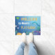 Welkom mat voor kinderspeelkamer met zeeen wezens onder het ontwerp van de zee oceaan. Bewerk de naam. Het kleurrijke afbeelding show een onderwaterscène met een zee schildpad, dolfijn, octopus en verschillende vissen en koralen. Geweldig voor kleine oceaanliefhebbers!