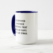 Los twee gemeenschappelijke online vergaderingsproblemen met één mok op! Aan de kant van de "Je bent aan de stomme" kan je collega weten dat ze vergeten zijn hun microfoon weer aan te zetten nadat ze met hun hond hadden gesproken. De "ik heb een andere vergadering overleefd die een e-mail zou moeten zijn" laat je collega's weten dat het veel te lang heeft gesleept!
