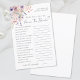 Liefde is in bloei Hoe goed ken je de bruid? Spel. Voeg een leuke en grillige activiteit toe aan je vrijgezellenfeest met dit charmante vraagspel, ideaal voor een "Love Is In Bloom" wildflower-themafeest. Gasten kunnen testen hoe goed ze de bruid kennen door een reeks leuke en persoonlijke vragen te beantwoorden, hun antwoorden op te schrijven in de voorziene ruimtes. Het ontwerp is voorzien van delicate waterverf wilde bloemen. Het kleurenpalet bestaat uit zacht blozend roze, stoffig roos, lila, lavendel, violet en frisse greens voor een dromerige, romantische look. De speltekst wordt weergegeven in een mix van elegant handgeschreven script en schone seriële lettertypen, waardoor het zowel stijlvol als gemakkelijk te lezen is. Volledig aanpasbaar, u kunt de vragen, lettertypen en kleuren bewerken om perfect bij uw vrijgezellenfeest-thema te passen. Deze zoete activiteit voegt een speelse, bloemige toets toe aan het vieren van de aanstaande bruid.