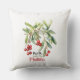 Kondig het hoogseizoen in met deze charmante kerstkussen dat een prachtige waterverf illustratie van maretak laat zien, geaccentueerd met rode bessen en vastgemaakt met een vrolijke strik. Een vrolijke kerstboodschap met de tekst "Meet Me Under the Mistletoe" (Kom onder de maretak), voegt een vleugje nostalgie toe aan dit klassieke ontwerp, waardoor het een perfect kerstcadeau is voor familie, vrienden en nieuwe huiseigenaren. Dit gezellige kussen voegt warmte en seizoensgebonden charme toe aan elke ruimte en is een ideale toevoeging aan uw kerstdecoratie.