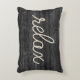 "Relax" tekst in nautisch touwontwerp op donkergrijze schuur houten achtergrond.