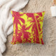 Tropisch palmboomontwerp in een rood en geel geposteriseerd effect. Vet ontwerpkussen met natuurlijk patroon van bomen. Tropische palmbomen.