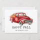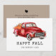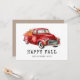 Mooie oogstfeestkaart met waterverf rode vrachtwagen met pompoenen.