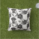 Deze kussen met een accent in de buitenlucht worden getoond met een mooie zwarte bloemen kunstfoto. Color White past dit object aan of koopt zoals het is. StockAfbeelding vecteezy.com