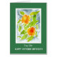 Une jolie carte d'anniversaire d'octobre pour une soeur, avec les fleurs du mois de naissance d'octobre, les Marigolds Pot orange vif, entourée d'une profonde frontière verte avec des lettres blanches. Le design est tiré d'une aquarelle de Judy Adamson. N'hésitez pas à personnaliser le message intérieur.