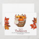 Vier het gevoel van dankbaarheid met dit prachtige Thanksgiving wenskaart, met een rustieke mand vol met felle oranje pompoenen en herfstbladeren. Ontworpen in warme seizoensgebonden tinten, vangt deze kaart de gezellige essentie van de herfst oogst en het plezier van het geven van bedankt. De bewerkbare boodschap op de voorkant stelt u in staat om uw begroeting te personaliseren, waardoor deze perfect is voor het verzenden van liefde, gelach en waardering naar vrienden, familie of collega's. Of u nu vakantiewensen deelt over de kilometers of een oprechte noot toevoegt aan een seizoensgeschenk, deze kaart is een tijdloze manier om Thanksgiving meer memorabel te maken.