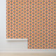 Sinaasappel en blauw diamanten en rondingen op een witte achtergrond creëer Een helder en vet patroon voor dit behang.