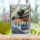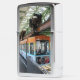 De geweldige Floating Train of Sky Train (Wuppertaler Schwebebahn) uit Wuppertal, Duitsland. Gebouwd in het begin van de 20. eeuw, hielp deze technologie de stad Wuppertal om het openbaar vervoer in een dichtbevolkt gebied te implementeren, door de trein recht over de rivier de Wupper en boven de straten te bouwen. Deze foto shows een prachtige blauw-oranje trein in een van de treinstations.