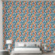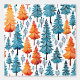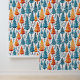 Winterthema waterverf blauw en oranje dennenboom patroonstick en schil behang.