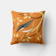 Decoratieve kussens met gestileerde vogelkunst van een Nuthatch op tak-zirls en een oranje achtergrond met bladpatroon