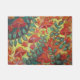 oranje champignonverwelking heeft rode bloemen, groene wijnstokken en bladeren op een gele achtergrond. Dit schilderij van natuur maakt een ontspannende whimsical-welkomstmat.