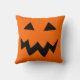 Oranje Halloween pompoenkop met kussen. Scary carved jack o lantern face design. Grappig huisdecor voor Halloween party. Cute spooky Holiday decorations.
