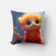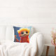 Dit kussen heeft een oranje schepsel op.