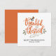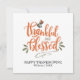 Het ontwerp is voorzien van de dankbare en gezegende schrijfwijze in een mooi oranje script. Het is formeel, eenvoudig en elegant. Pas dit wenskaart aan door jouw tekst toe te voegen.