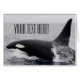 Het Orca Killer Whale dat het Surface Custom Text Wenskaart bereikt: Een prachtig wenskaart voor walvisliefhebbers en walvisvaarders. U kunt het personaliseren door een naam of een bericht op de voorzijde te typen, of de placeholder tekst te schrappen en het leeg te laten voor een duidelijk schitterend killerwalvis wenskaart. Er is ook een kleine zwarte en witte dodelijke walvis op de rug.