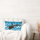 Orca Killer Whale Blue Chevron Sierkussen: Een orca "killerwalvis" zwemt door een blauwe chevron zigzag oceaan.