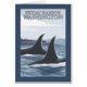 Orca Whales #1 - Vrijdaghaven, Washington - Vintage Travel Poster werd in 2007 opgericht. Dit afbeelding toont scènes van de Vrijdag Harbour, WA.