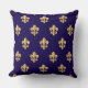 Oreiller à jet d'or et bleu Fluer De Lis