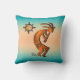 Éclairez votre maison avec l'oreiller à lancer unique "One of a Kind" Sud-Ouest Kokopelli! Il comprend une Kokopelli sud-ouest en cuivre jouant la Flûte et dansant sous le soleil sur un Arrière - plan de coucher de soleil turquoise et orange! C'est un Art Design original de l'artiste Kerry Miller.