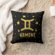 Lancer sur mesure l'oreiller pour "Gemini" avec le symbole du zodiaque doré, les étoiles dorées et l'arrière - plan noir.