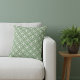 Un coussin à lancer saisissant avec un design géométrique floral avec une palette harmonieuse de couleurs vert sauge et blanc croustillant.