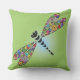 Colorful Dragonfly Damselfly Design pillow extérieur avec personnalisable couleur arrière - plan.