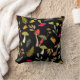 Cet oreiller à base de champignons botaniques a un arrière - plan noir avec des champignons roses, oranges et verts. Des escargots orange colorés et des coléoptères vert vif donnent un ton fantaisiste au design.