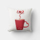 Cet oreiller de lancer est montré dans une couleur blanche avec un joli café festif Valentine coeur imprimé en rouge. Customisez cet objet ou achetez-le tel quel.