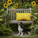 Oreiller de soutien lombaire extérieur jaune. Cet oreiller accent brillant incroyable est décoré d'une illustration photo de tournesol artistique. Fait un grand détail confortable et décoratif pour votre jardin ou patio. Il aidera à transformer votre espace de vie en un endroit heureux et cosy.