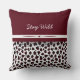 Adoptez votre côté sauvage avec cet oreiller décoratif saisissant, orné d'une impression léopard audacieuse dans des tons de noir et de blanc, rehaussée de taches bordeaux riches. La partie supérieure de l'oreiller est en bordeaux uni, élégamment inscrit de "Stay Wild" dans une écriture fluide, placée au-dessus d'une bande horizontale blanche sophistiquée. Parfait pour ajouter une touche d'élégance indomptée et de confort à votre salon, chambre ou tout espace qui a besoin d'une touche de personnalité. Conçu à partir d'un tissu doux et durable, cet oreiller est conçu pour le style et la relaxation.