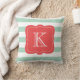 Ajoutez une touche de couleur et de personnalisation à votre espace avec cet élégant coussin décoratif rayé corail et seafoam. Avec un monogramme gras dans un cadre corail décoratif, cet oreiller est parfait pour ajouter une touche d'élégance à la décoration côtière ou contemporaine de votre maison. Personnalisez-le avec votre initiale pour un accent unique qui améliore votre salle de séjour, chambre ou salon.