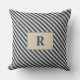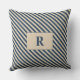 Oreiller jeté rayé bleu/vanille avec monogramme
