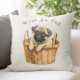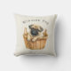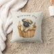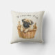 ajoutez le nom de votre pug à ce bel oreiller avec un pug fauve assis dans un panier en osier sur un fond crème.