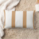L'oreiller de style lombaire est présenté dans une impression rayée de caramel et blanc. Personnalisez cet oreiller ou achetez tel quel.