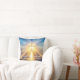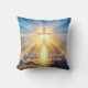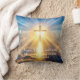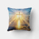 Cet oreiller de lancer est montré avec un joli imprimé d'art de la croix avec des rayons du soleil céleste et a une écriture spirituelle. Customisez cet objet ou achetez-le tel quel. Image sous licence