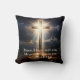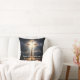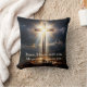 Cet oreiller de lancer est montré avec un joli imprimé d'art de la croix avec des rayons du soleil céleste et a une écriture spirituelle. Customisez cet objet ou achetez-le tel quel. Image sous licence