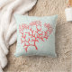 Ventilateur Corail Designer Accent Lancer Oreiller. Un bel oreiller à grand lancer en corail et couleur aqua d'un ventilateur d'illustration design d'inspiration corail. Un design élégant de vie marine.
