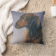 Cet coussin présente une reproduction de mon tableau original à l'huile d'un dachshund aux cheveux longs.