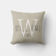 Famille ! coussin de décoration de maison personnalisée. coussin monogrammé en beige, noir et blanc personnalisé avec nom de famille en typographie superposition de police sur un arrière - plan d'effet photo en lin beige IMPRITED. Elke Clarke© Fait un cadeau idéal pour les jeunes mariés ou pour votre famille. Grand accessoire tendance et élégant pour votre chambre, chaise préférée, comme décor de maison amusant dans votre chambre familiale ou ajout décoratif formel à votre salon. Customisez avec vos noms, monogramme date initiale et mariage.