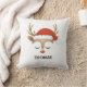 Un joli visage de rennes décore cet oreiller de lancer avec les mots Joyeux Noël. Grand accent coussin à décorer pour Noël. Personnalisez-le avec votre nom. Conçu pour vous par Blackberry Boulevard.
