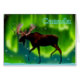 Une image toujours si légèrement stylisée d'une silhouette d'orignal contre les aurores boréales. Le texte "Canada" apparaît en bleu et blanc brillant.