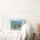 Origineel kunstschilderij van Pacific reef Oriental Sweetlips door kunstenaar Carolyn McFann van Two Spinnende Cats Studio, bedrukt op een Amerikaanse kwaliteitskussens van Mojo voor het duiken van koraalriffen en zout aquarium visventilatoren.
