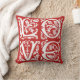 Op de voorkant van dit kussen staat het woord "Love" gemaakt met sierletters in het wit. De achterkant van het kussen heeft een fancy bloei met twee namen voor u om te personaliseren met de namen van u en uw partner of andere tekst. De rode achtergrondkleur kan worden gewijzigd door een andere achtergrondkleur aan te passen en te selecteren.