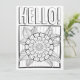 hallo - De tekst "Hallo" wordt in grote blokletters weergegeven met het schaduweffect boven een grote, opzichtige bloei met grote bladeren en een onregelmatige gestreepte achtergrond. Kleur deze kaart en voeg uw bericht aan de rug toe. Klik op Aanpassen voor meer papier- en grootteopties. Van OrnaMENTALs™ voel Goede Woorden het Kleuren Boek. OrnaMENTALs die voor Alle Leeftijd kleurt, Ontwerp #0095. Originele illustratie door Sue Chastain, suziqcreations.com.