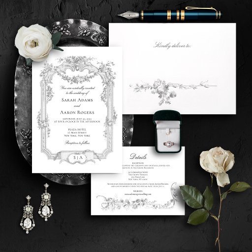 Enter the romantic era of 18th century France with this elegant etched light gray decorative floral border. Coordinates with my Classic French Rose Garland collection.