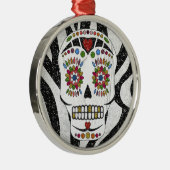 Ornement Rond Argenté RAB Rockabilly Sugar Skull on Zebra
