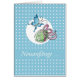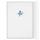 Eine schöne Ostergrußkarte mit einem blauen Schmetterling und einem grünen Ostéréi mit weißen Blumen und einem rosa Band.