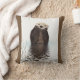 Een kussen met een foto van een schattige otter die rechtop in het water staat met zijn poten die zijn gezicht vasthouden. Zijn hoofd draaide naar links en zag er lief en schattig uit.