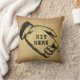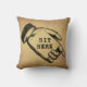 Deze kussen voorzien van een antiek zwarte lijntekening van een ouderwetse hand. Het wijst één vinger naar beneden, terwijl het een "zit hier"-teken houdt.