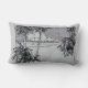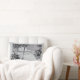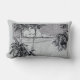 Een kussen met een oude zwart-wit ets van een tropisch strand met palmbomen, wollige wolken en de oceaan aan de horizon. Klik op 'Aanpassen' om uw naam of bericht toe te voegen, achtergrondkleuren te wijzigen en meer.